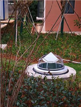 光導照明系統(tǒng)的加入成了小區(qū)景觀的一大亮點,鉆石型采光罩與小區(qū)景觀相結合相得益彰,通過該系統(tǒng)將自然光導入地下停車場,直接省去白天的電力消耗,實現(xiàn)節(jié)能減排與綠色照明!