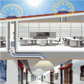 3、漫射區(qū):由漫射器將比較集中的自然光均勻、大面積地照到室內(nèi)需要光線的各個地方。從黎明到黃昏甚至陰天或雨天,該照明系統(tǒng)導入室內(nèi)的光線仍然十分充足。