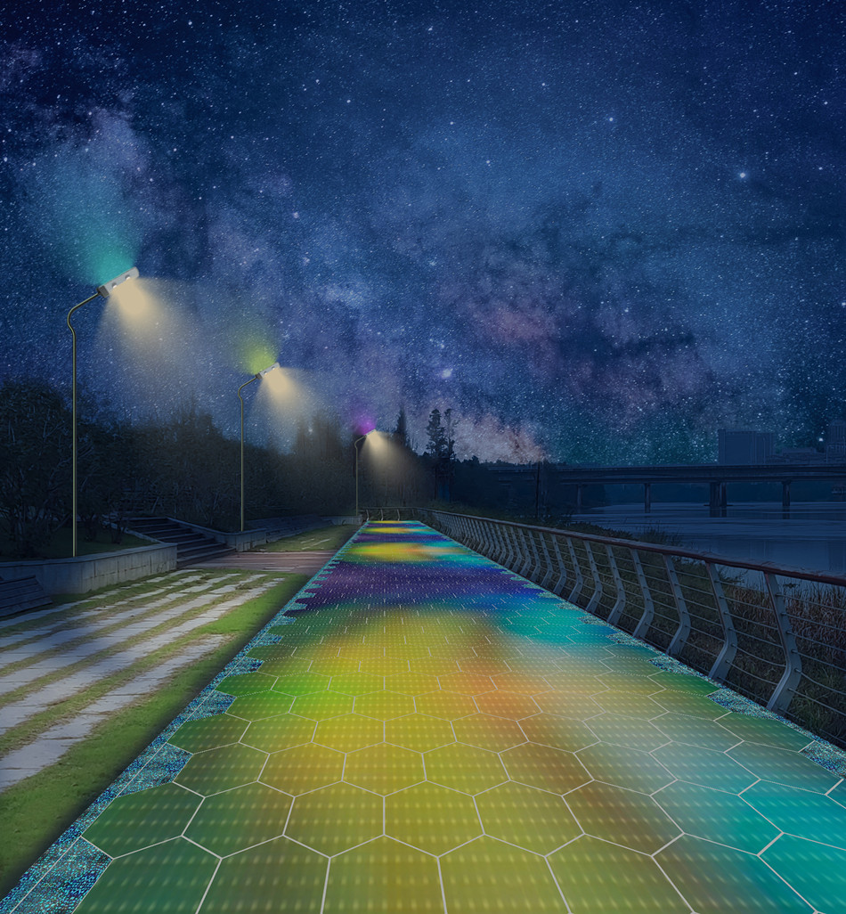 人行廣場白天發(fā)電+夜間亮化效果