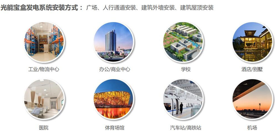 光能寶盒發(fā)電系統(tǒng)應該場景廣泛于工業(yè)廠房、物流中心、辦公場所、學校、醫(yī)院、體育場館、展覽館、動物園、植物園、海洋館、部隊、港口、機場、火