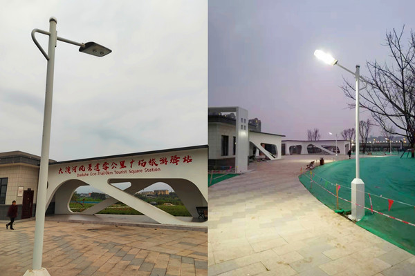 光能路燈白天發(fā)電+夜間照明效果(四川樂山零碳公園)
